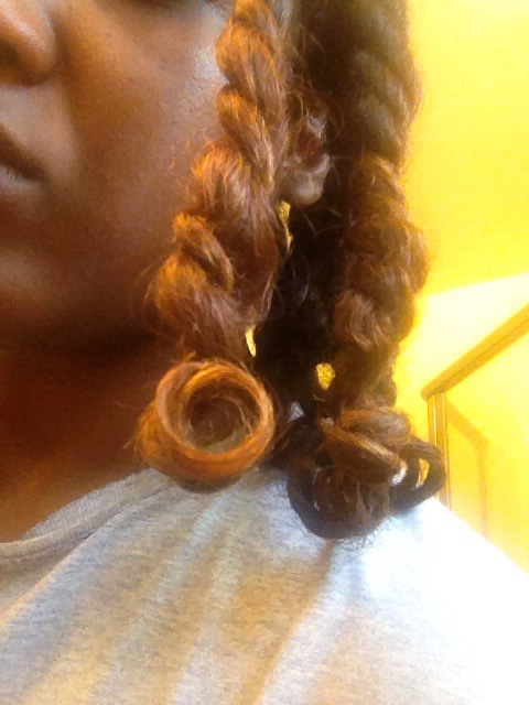 After looking at the photo I realize just how bad my ends were. My mom was visiting so I had her clip quite a few of those dead ends off and I twisted it up right away.